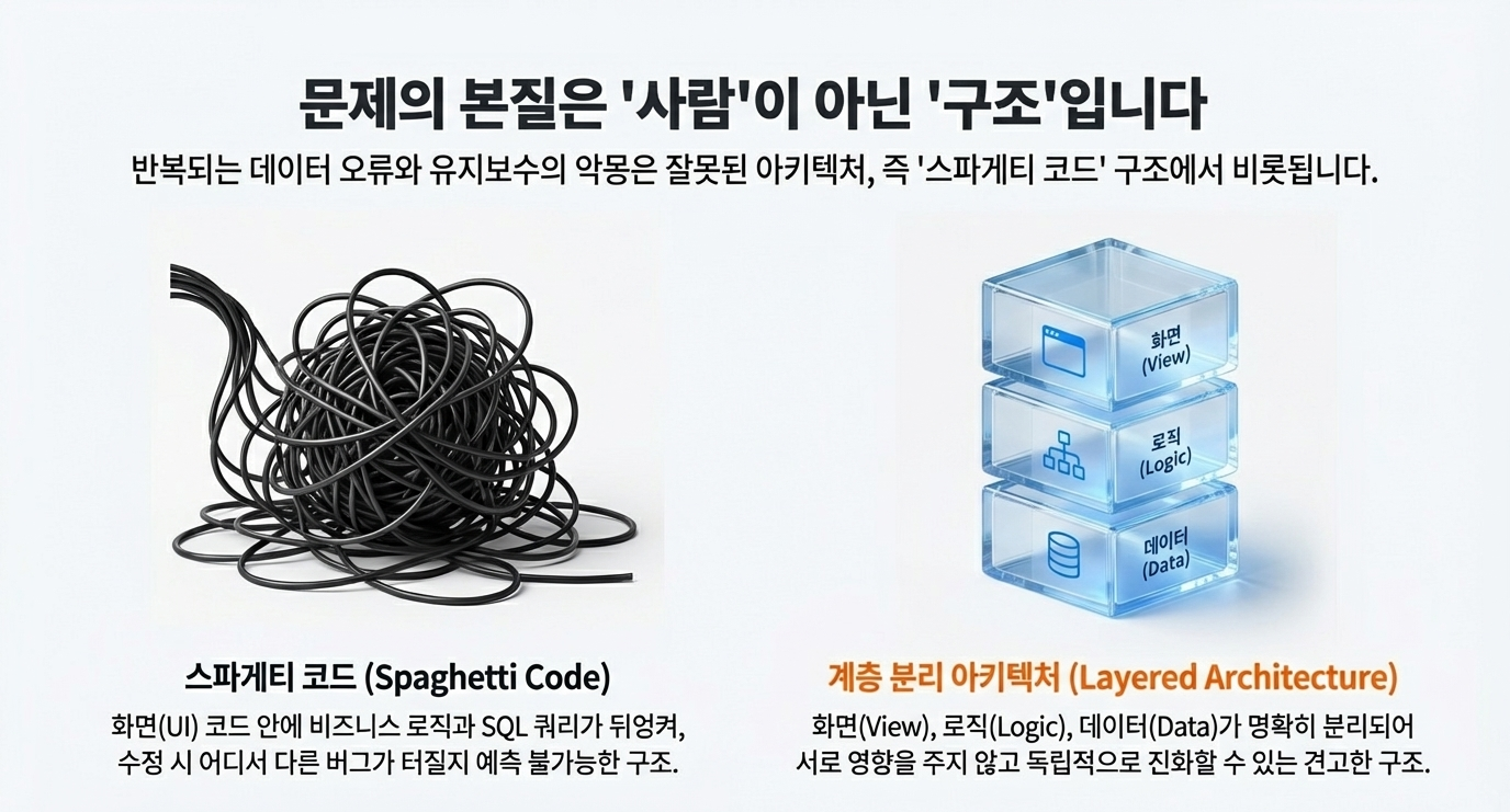 사용자 환경(웹/온프레미스)에 관계없이 Business Logic이 중심을 잡아주므로, 데이터 오류를 방지하고 시스템을 유연하게 확장할 수 있습니다. 🚀