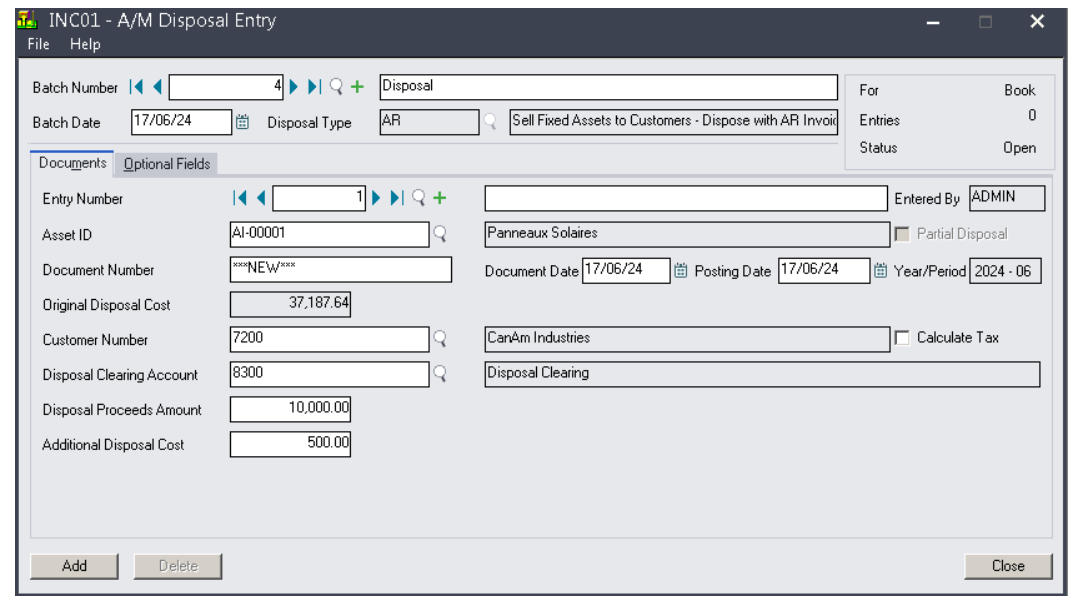. 보고 및 감사 목적으로 매각가, 처분 원가 및 대금(매각대금 송장 생성)을 추적합니다.