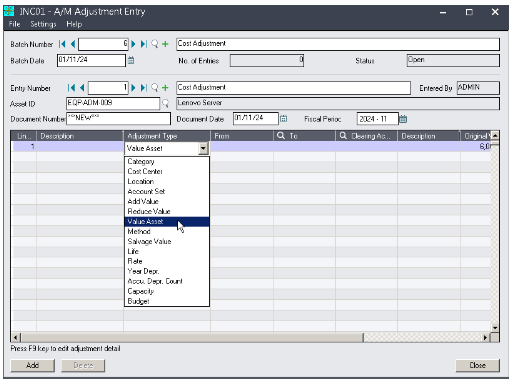 기업은 오류를 수정하고, 자산 가치를 업데이트하고, 개선, 수리 또는 재평가와 같은 사업 활동으로 인해 변경 사항을 적용할 수 있습니다. 각 조정 사항은 Norming Asset Management에 기록되고 전체 감사 추적이 가능하므로 변경 시점, 변경자 및 변경 사유를 쉽게 추적할 수 있습니다. 이는 특히 감사 및 재무 보고에 중요한 투명성과 책임성을 보장하는 데 도움이 됩니다.