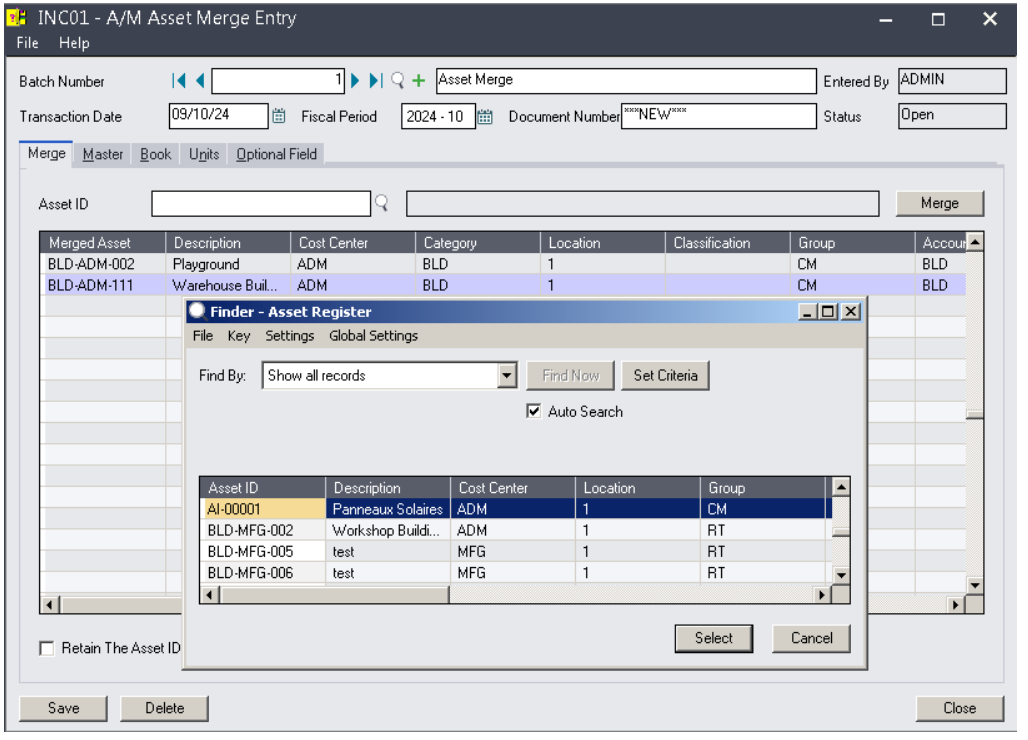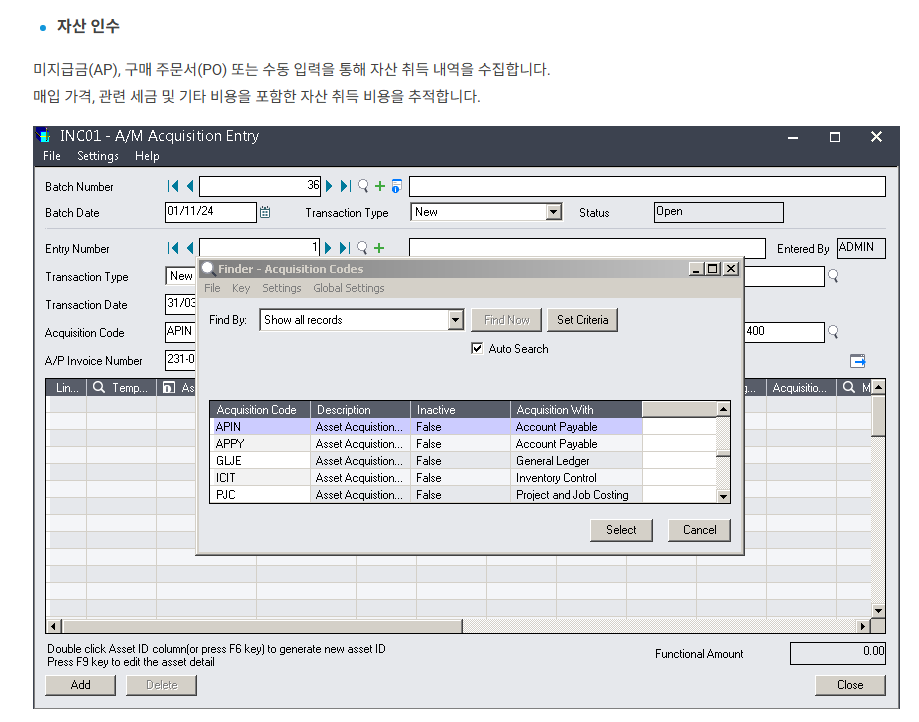 🚛 Sage 300 고정자산 주요 기능