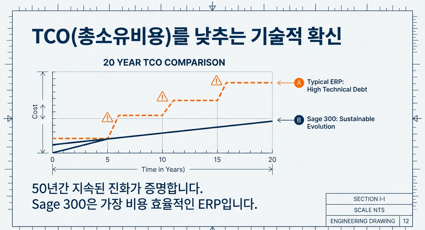 . 50년간 지속된 진화가 증명합니다. Sage 300은 가장 비용 효울적인 입니다.(가성비가 ' 갑' 입니다.)