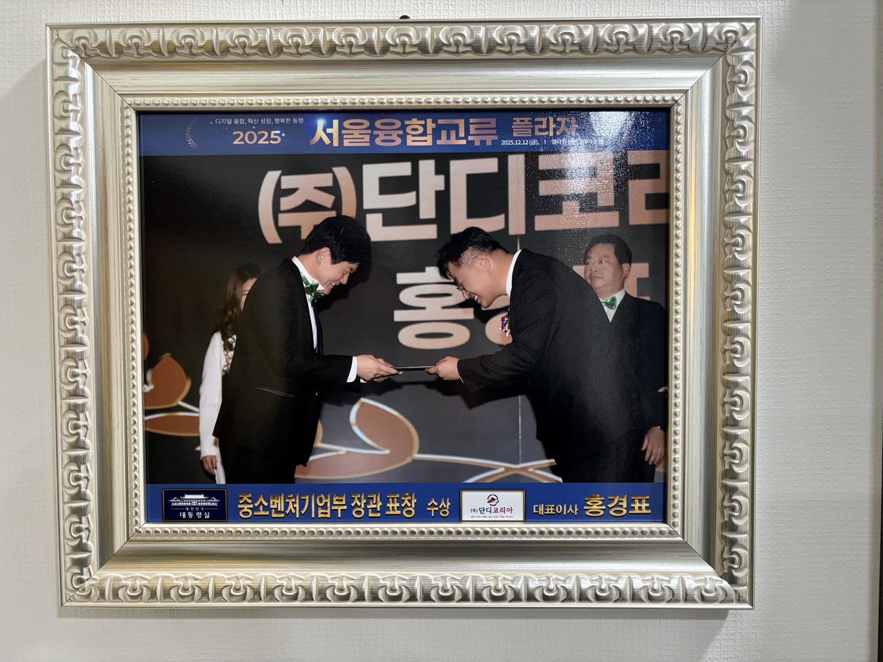 사진설명 : 2025년 12월 - 단디코리아 대표이사, 중소벤처기업부 장관상 수상 장면