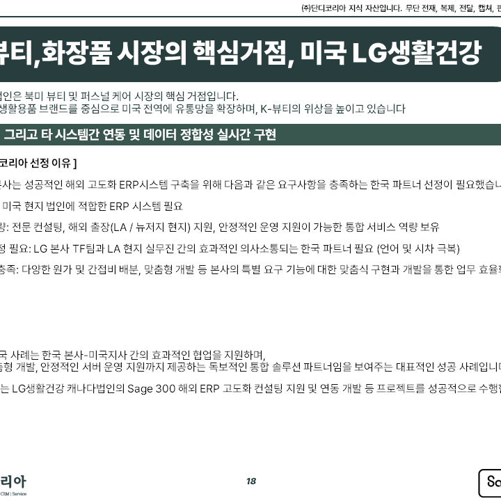 아래 전체 회사소개서가 필요하신 분은 아래 개인정보 수집 및 이용 동의에 체크(v)한후 입력폼에 이메일 ,핸드폰 연락처, 내용을 입력후 '작성'버튼을 눌러주시면 이메일로 보내 드리겠습니다.