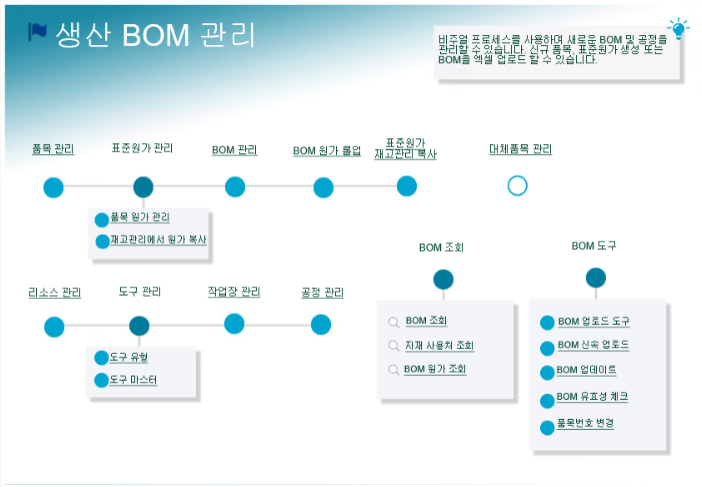 ⚙️ 2. 생산 BOM 관리 흐름 예시