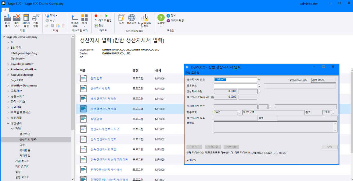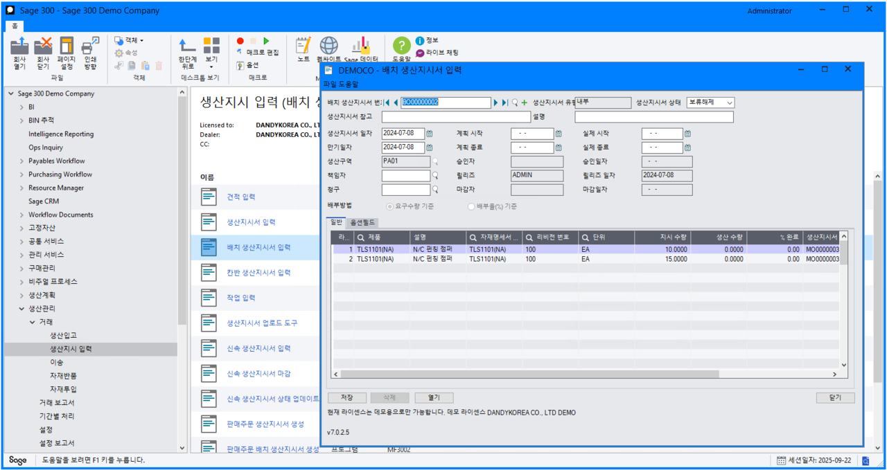 Sage 300 Manufacturing Management는 단순한 생산지시 기능을 넘어,