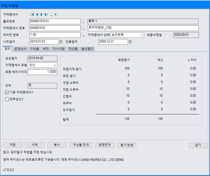BOM 관리 ➔ BOM 원가 롤업(Roll-up) ➔ 표준원가 재고 관리 복사