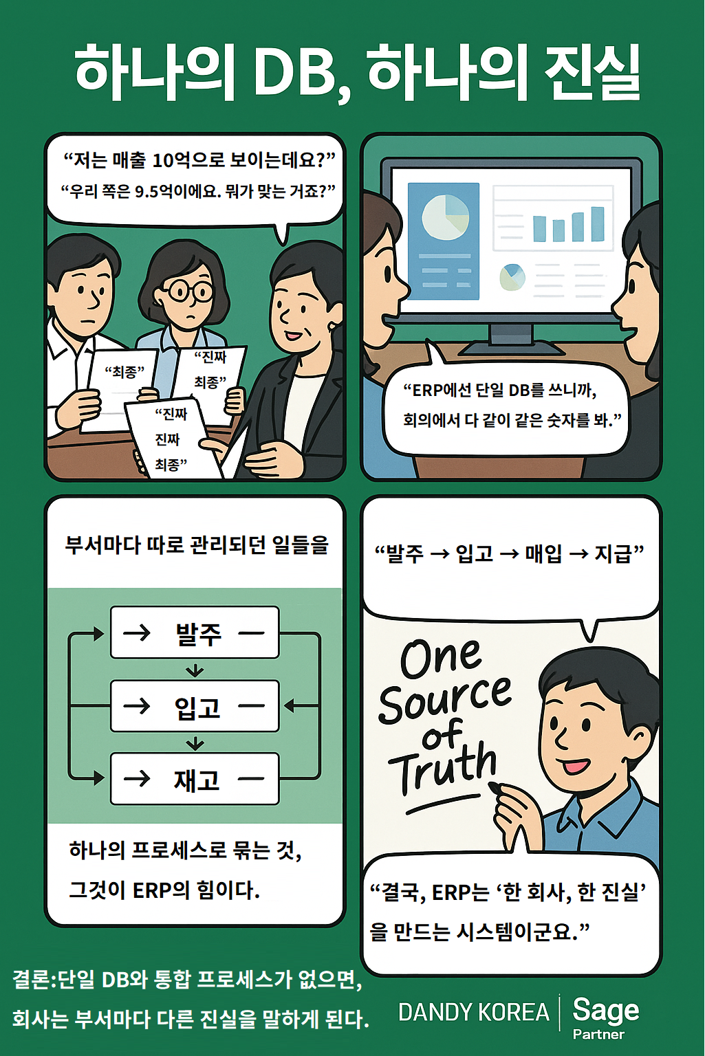 “ERP에선 단일 DB를 쓰니까, 회의에서 다 같이 같은 숫자를 봐.”