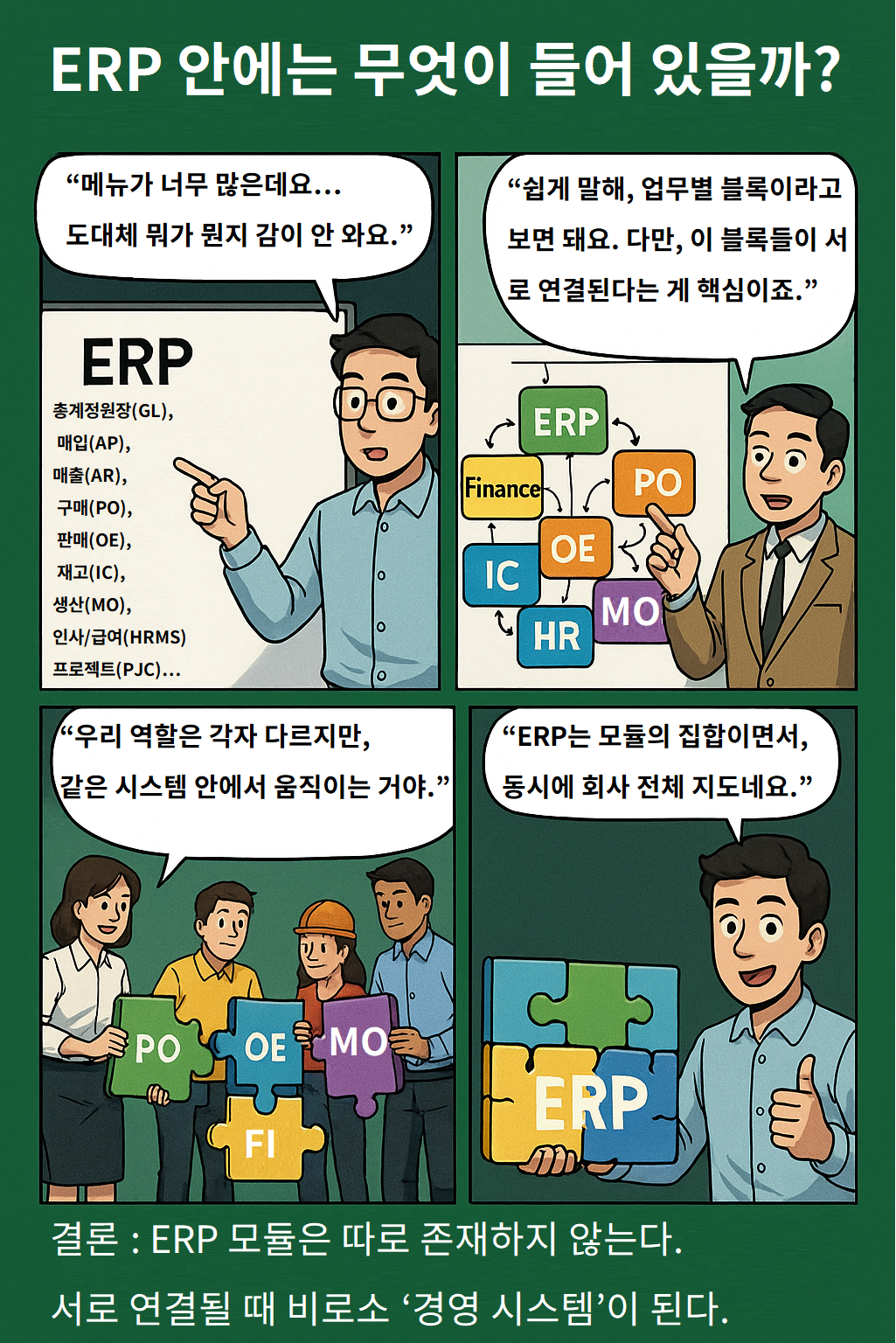 “ERP는 모듈의 집합이면서, 동시에 회사 전체 지도네요.”