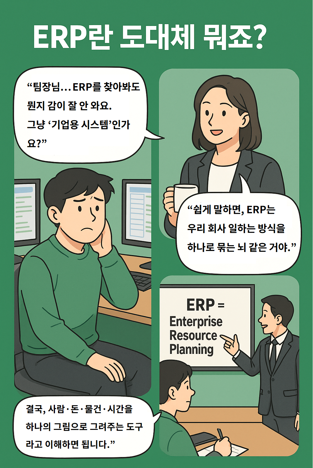 “팀장님… ERP가 뭔지 검색해도 느낌이 안 와요. 그냥 ‘기업용 시스템’… 맞나요?”