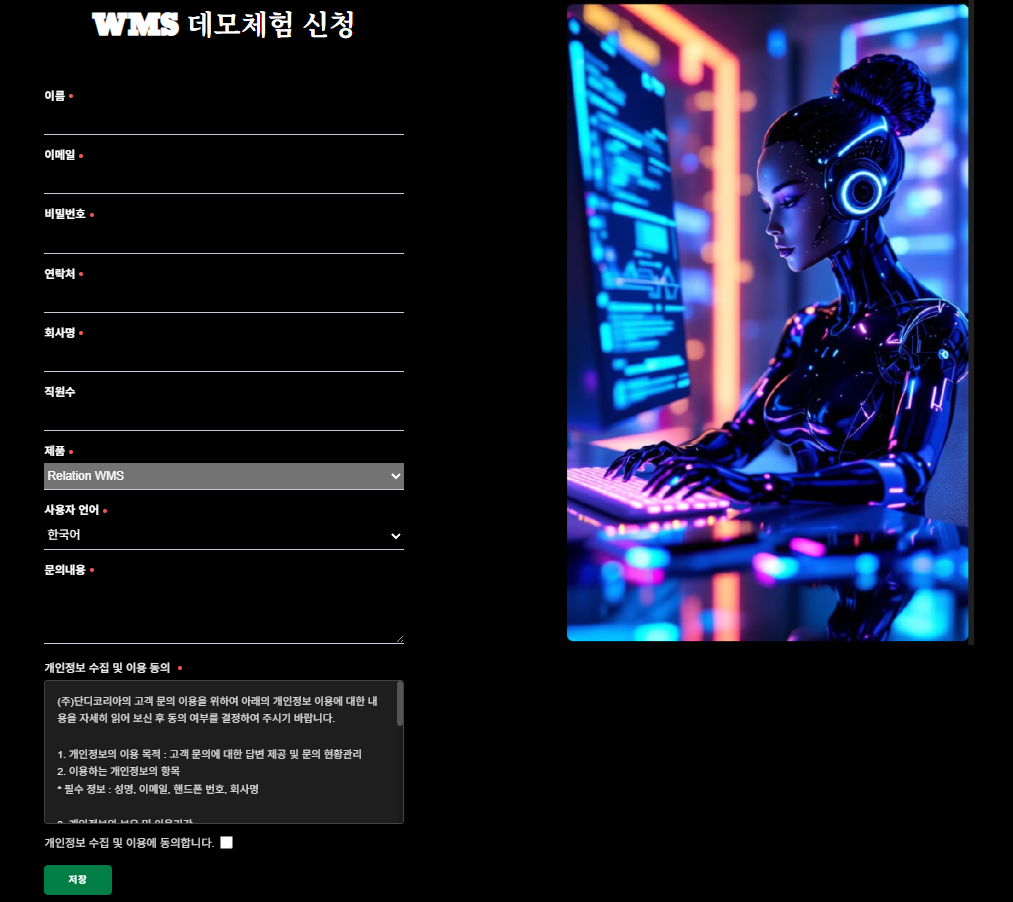 창고관리시스템 무료 체험 신청 (한국어/영어)