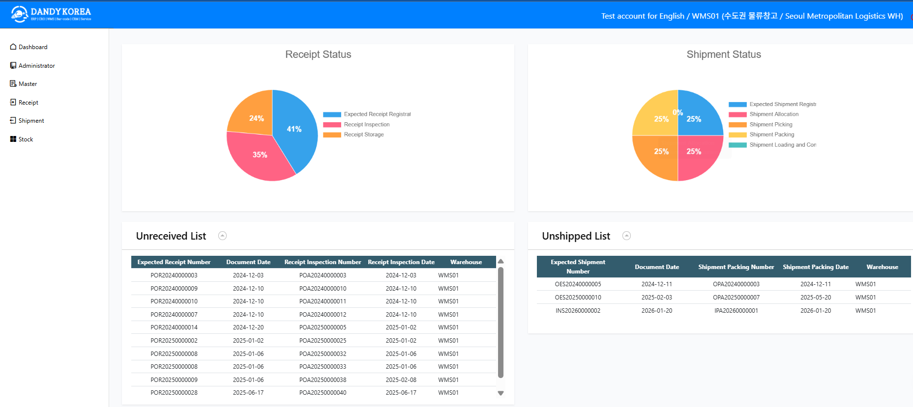 영어 지원 : WMS 사용자와 화주에 대하여 영어를 지원합니다.